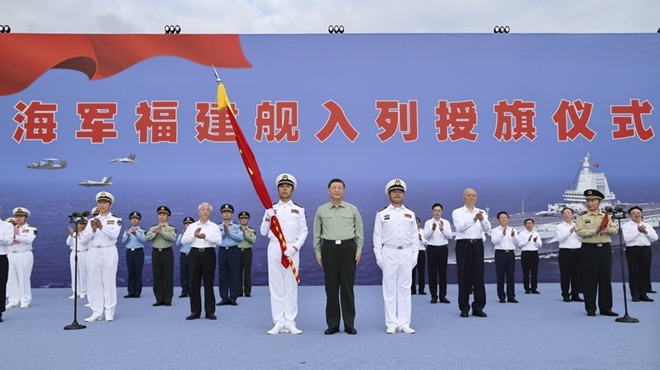 我國(guó)第一艘電磁彈射型航空母艦入列 習(xí)近平出席入列授旗儀式并登...